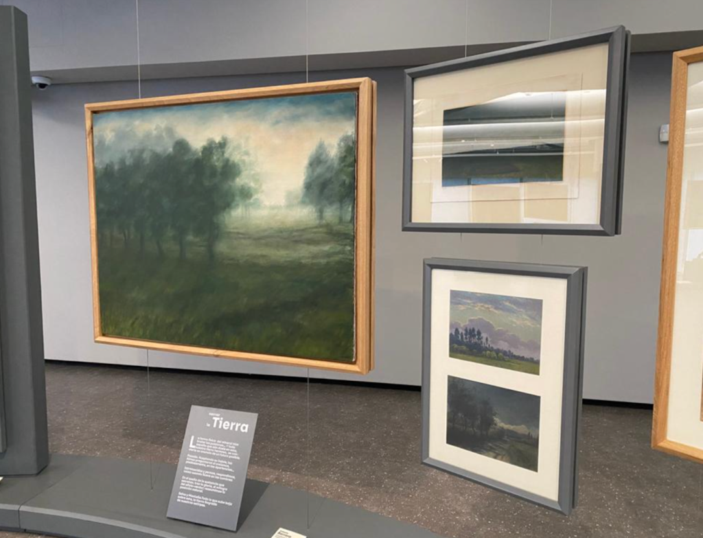 [14] Matilde Uribe, Fotografía de In memoriam en la exposición de Bancolombia con las obras que la rodean, imagen propia, 2023.